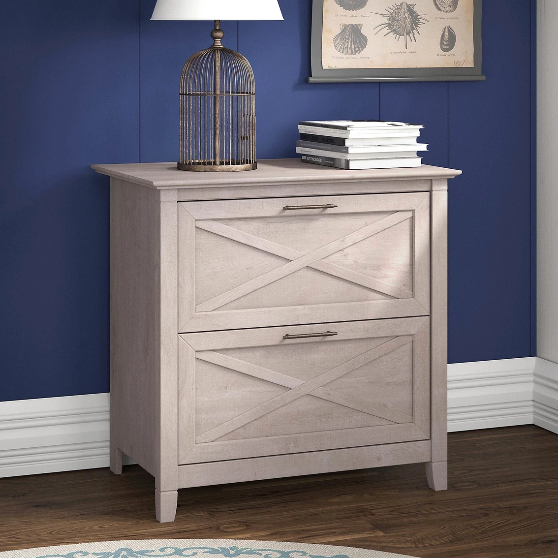 A natural fit for many homes, the Bush Furniture Key West Collection’s Lateral File provides a casual storage component that works subtly in almost any room. A unique X pattern accent on the drawer panels creates a relaxed style supported by a sturdy and attractive post leg design. This collection offers the look of natural reclaimed wood with an authentic washed gray finish with aged bronze hardware accents. Two file drawers accommodate letter and legal size files and include full extension ball bearing slides for smooth opening and closing. This component features a finished back so it can be placed anywhere in the room. Enjoy easy access to your folders and the Lateral File matches the height of any Key West Desk to create a spacious feeling and extended workspace. Key West offers a harmonious selection of furniture that makes putting a complete room ensemble together a breeze. Construction meets ANSI/SOHO standards for safety and performance. Model: KWF130WG-03.