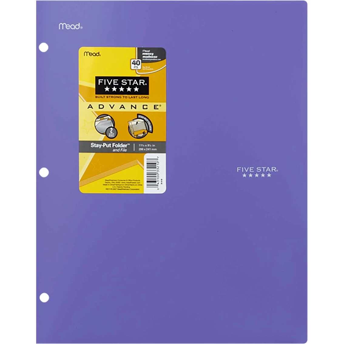 Arrange projects and subjects by color with this 2-pocket folder from Five Star. With stay-put tabs, plastic dividers and plenty of pockets, you’ll have space to organize all of your school documents. Model: 33210.
