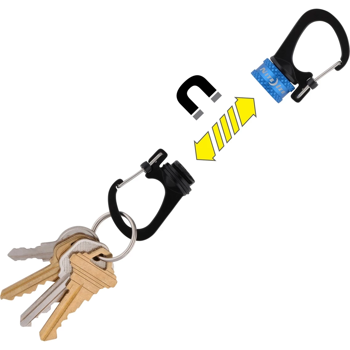 Need to keep small items like keys or tools secured in place yet easily accessible? These locking carabiners are connected by powerful neodymium magnets. They can be used together or independently for quick access to items. The threaded locking collar adds an extra level of security. Model: MSBL-R7.