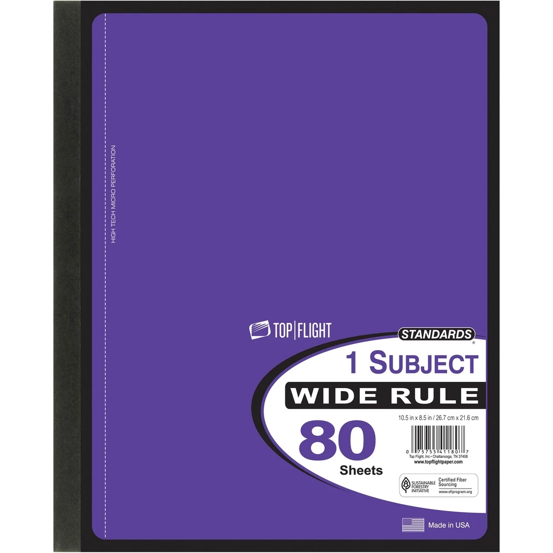 The Top Flight Wireless Notebook is a 10.5 x 8 in. notebook with perforated pages. It has 80 sheets and the wireless binding won’t snag.
